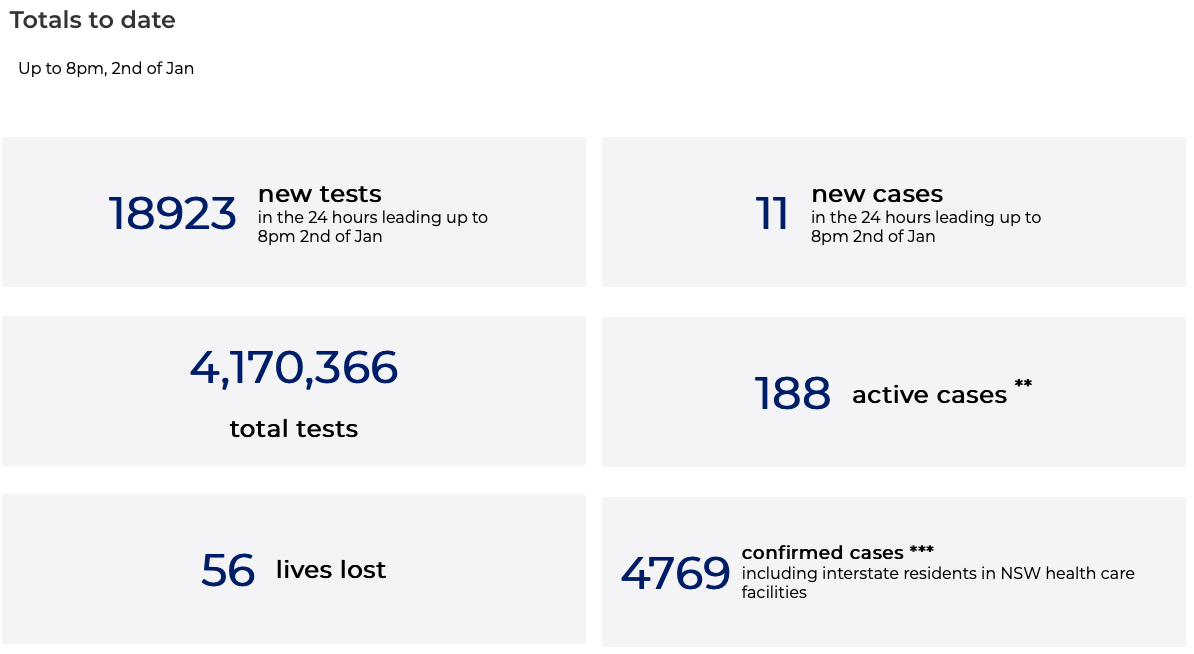 It must be really, really bad there, you might say, especially as they head into the hottest part of the year. Well, actually — no. Here’s the latest info from the NSW Health site.